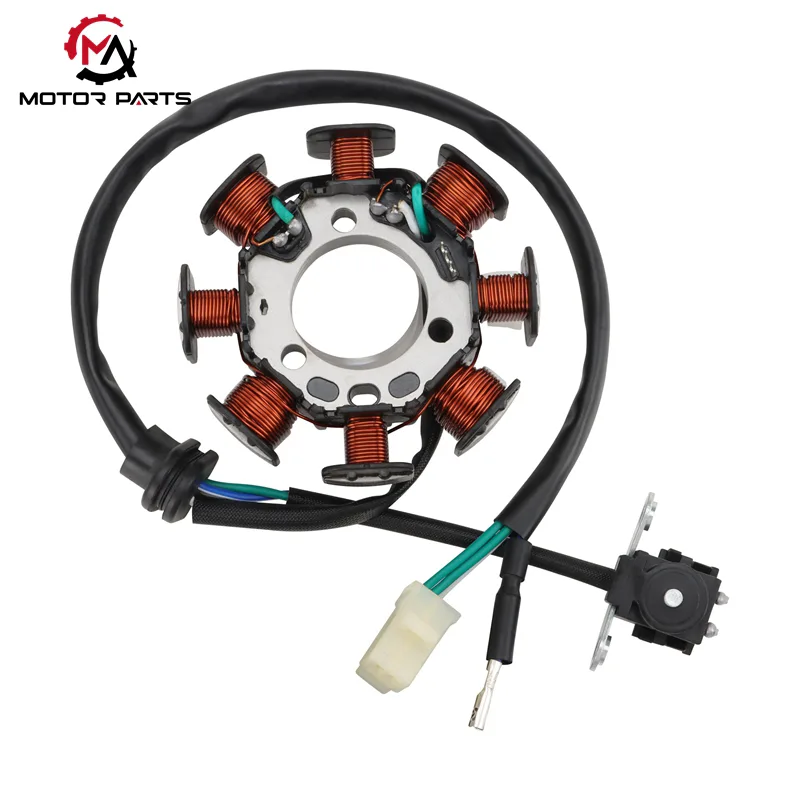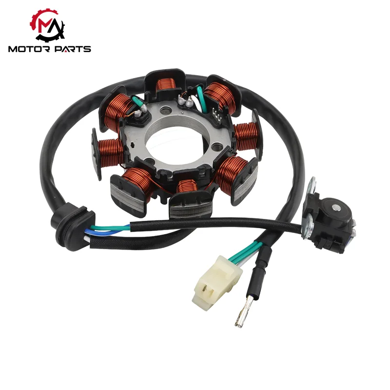 CRF150F မော်တော်ဆိုင်ကယ် Magneto Coil ၏လုပ်ဆောင်ချက်သည် Faraday ၏လျှပ်စစ်သံလိုက်လျှပ်စီးကြောင်းဆိုင်ရာဥပဒေအပေါ်အခြေခံသည်။ အင်ဂျင်လည်ပတ်သောအခါတွင်၊ crankshaft သည် rotor magnet ကို အရှိန်ပြင်းပြင်းဖြင့် လည်ပတ်စေပြီး dynamic alternating magnetic field တစ်ခုဖြစ်လာသည်။ stator coil အုပ်စုသည် မော်တော်ဆိုင်ကယ်၏လျှပ်စစ်အစိတ်အပိုင်းများ၏ ညှိနှိုင်းလုပ်ဆောင်မှုကို သိရှိနိုင်ရန် စက်နှိုးခြင်း၊ အားသွင်းခြင်းနှင့် အချိန်ချိန်ခြင်းစနစ်များသို့ ဖြန့်ဝေပေးသည့် လျှပ်စစ်ဓာတ်အားထုတ်ပေးရန်အတွက် သံလိုက်စက်ကွင်းလိုင်းများကို ဖြတ်တောက်သည်။
