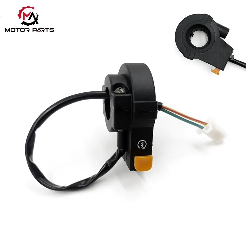 လျှပ်စစ်စတင်ခလုတ် (လျှပ်စီးကြောင်းအချက်ပြခလုတ်)- ကြားနေ သို့မဟုတ် ဘရိတ်ကိုဆုပ်ကိုင်ထားသည့်အခါ၊ 12V ဗို့အားဖြင့် စတားမော်တာအား မောင်းနှင်ရန်နှင့် လွယ်ကူစွာ အင်ဂျင်စတင်ရန် ဤခလုတ်ကိုနှိပ်ပါ။